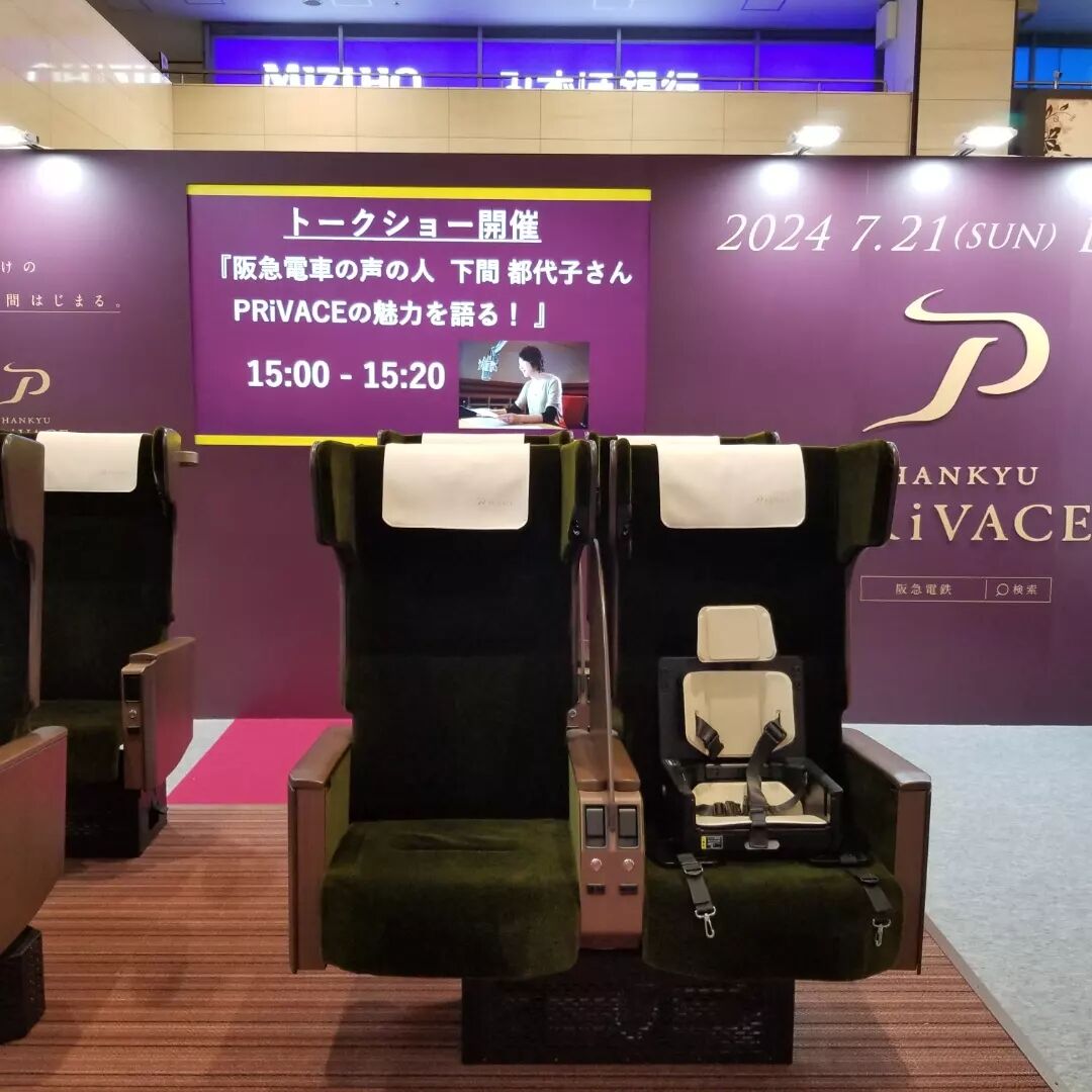 大阪梅田駅のBIGMAN前広場にて、座席体験イベントが行われているので、実際に体験してきました。ちょうど行ったときには、阪急の車内放送の声などとしてお馴染み、下間都代子氏のトークショーも行わていて、色々と面白い話も聞けました。