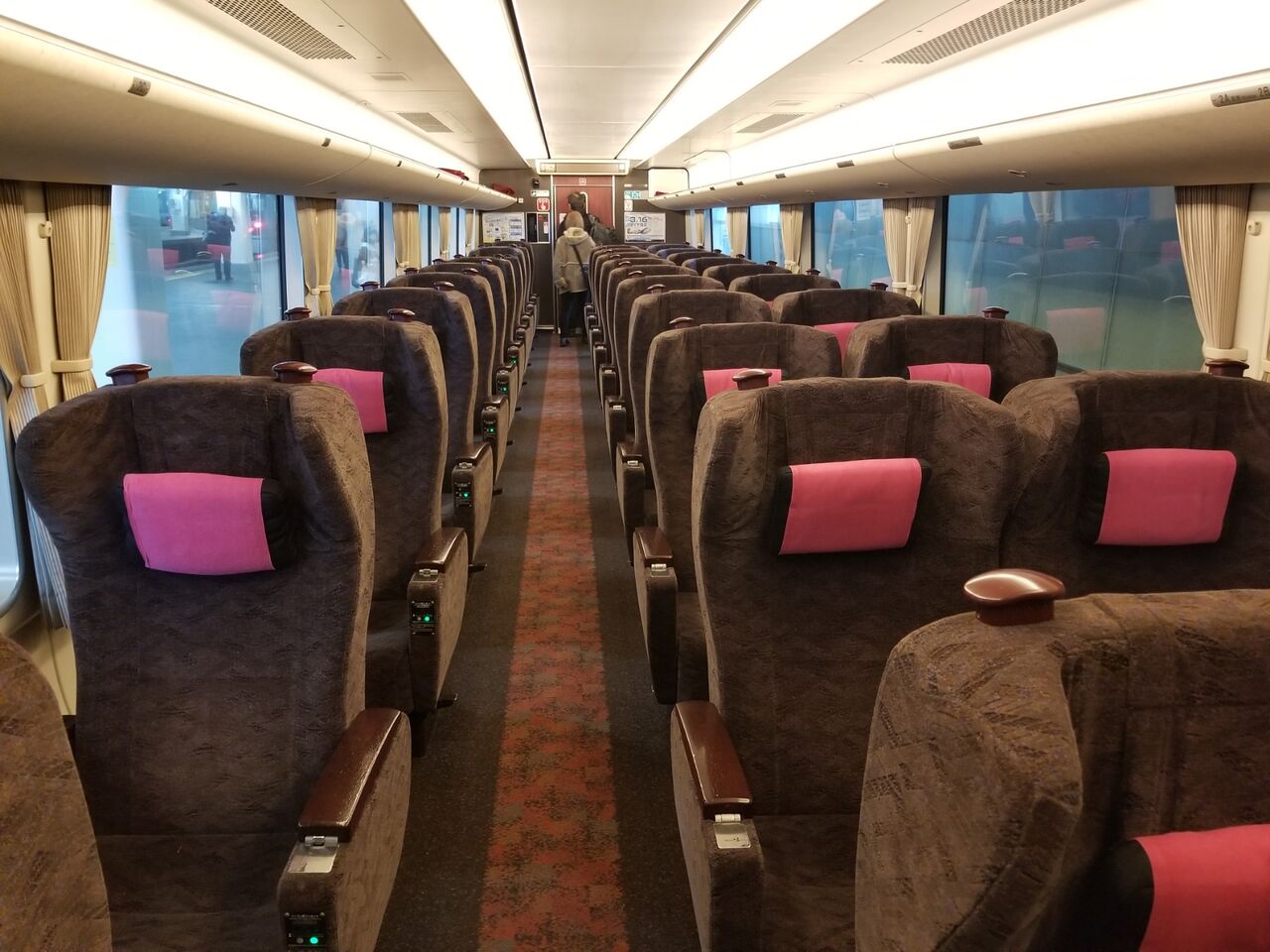 グリーン車の車内。ほぼ満席になる埋まり具合。