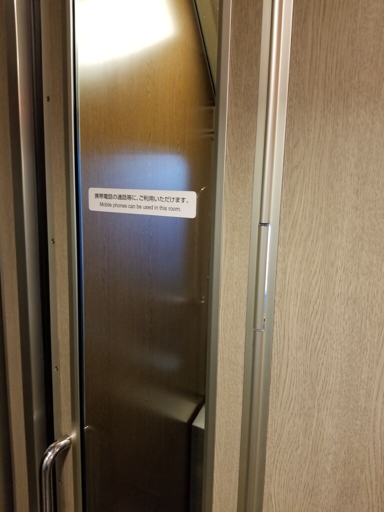 携帯電話の通話等に使えて、透明なドアで仕切られたフリースペース(4000番台の2・6・8号車に設置)。当初は喫煙ルームの予定だったが、全面禁煙に方針転換。個人的に一番気分転換もできて、お気に入りの場所。他の列車にも設置して欲しいと思うところ。