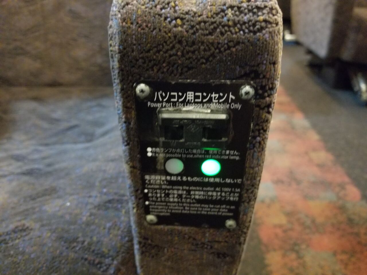 グリーン車は全席コンセント付き。普通車は最前部と最後部の座席のみ。