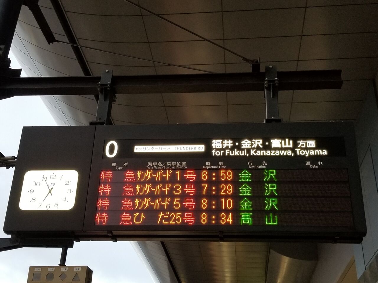 前回は大阪駅と京都駅で今後は見れなくなる表示を集めましたが、今回から実際に旅をして、特急サンダーバードに乗車した様子と、観光地などを巡った様子を順次取り上げます。