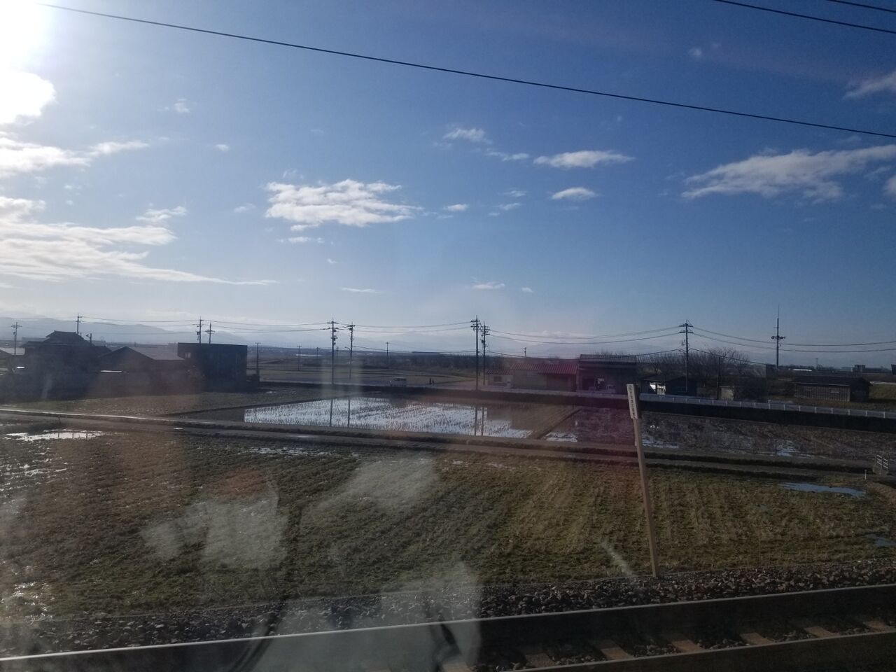 石川県内に入り、加賀平野を走行中。3月16日以降、特急サンダーバードからは味わえなくなる車窓。