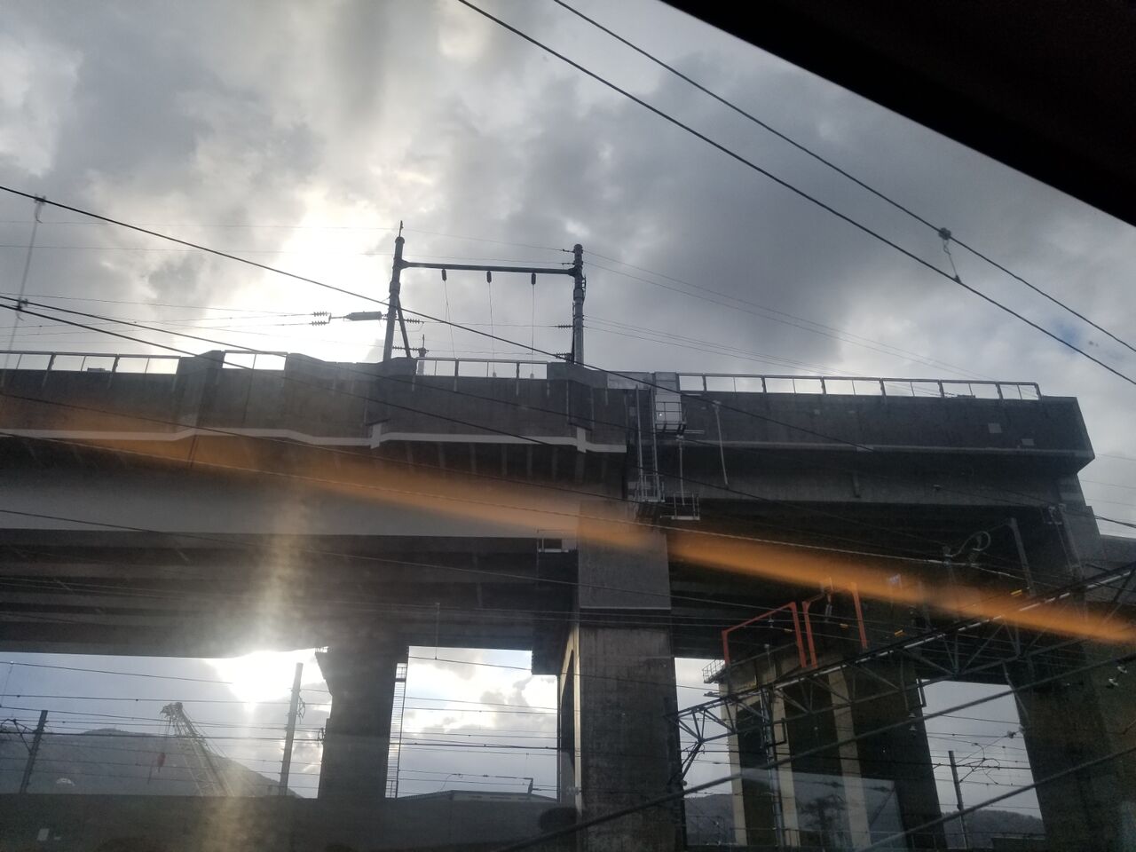 敦賀駅到着前。途切れた北陸新幹線の高架橋。ここから1日も早く、大阪延伸が実現し、この敦賀での強制乗換解消が待たれる。