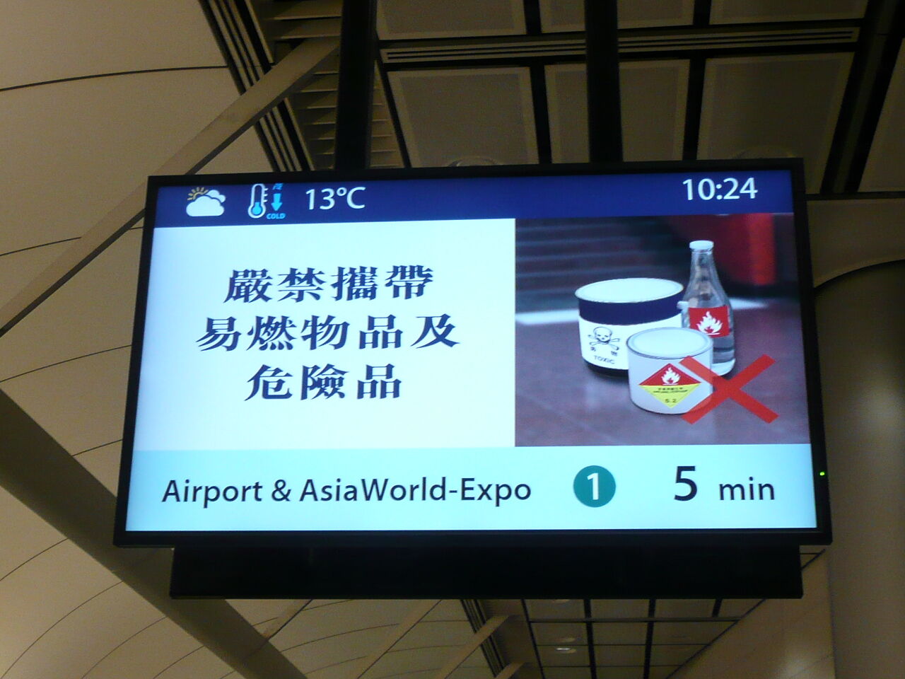 香港MRTの接近表示。到着まで5分を示す、5minの表示