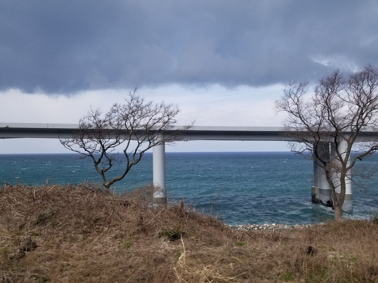 ここからは南に立山連峰を望みながら、北側はより日本海に近い区間となり、車窓に日本海を望める区間へと入ります。