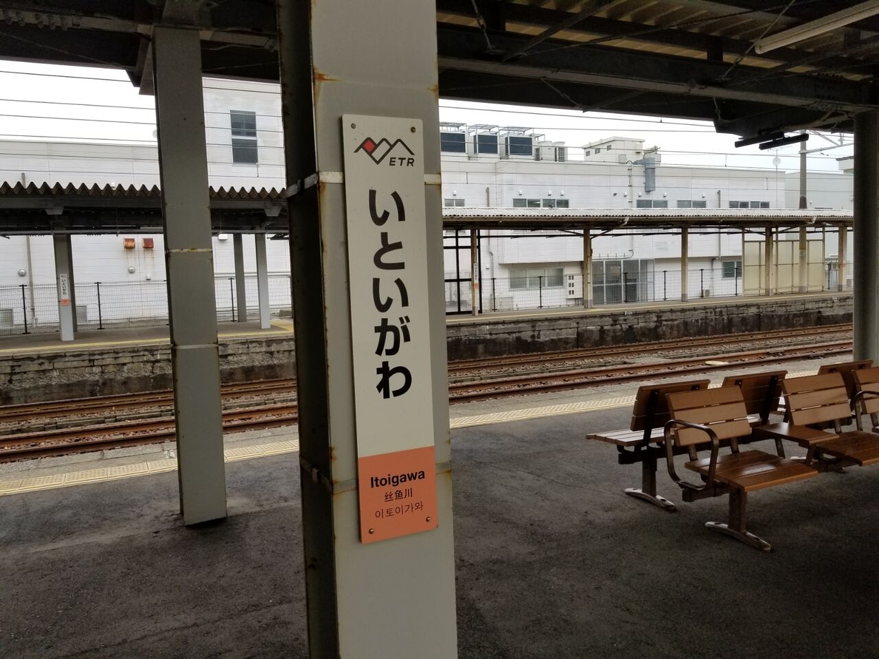 雪に覆われた北アルプスの山々を望みながら、姫川を渡って7:41、糸魚川駅に到着します。ここは北陸新幹線の駅もあり、日本海ひすいラインでは一番の大きな駅と言え、平日の朝の時間帯と言うこともあり、高校生をはじめとした学生の乗り降りが目立ちます。