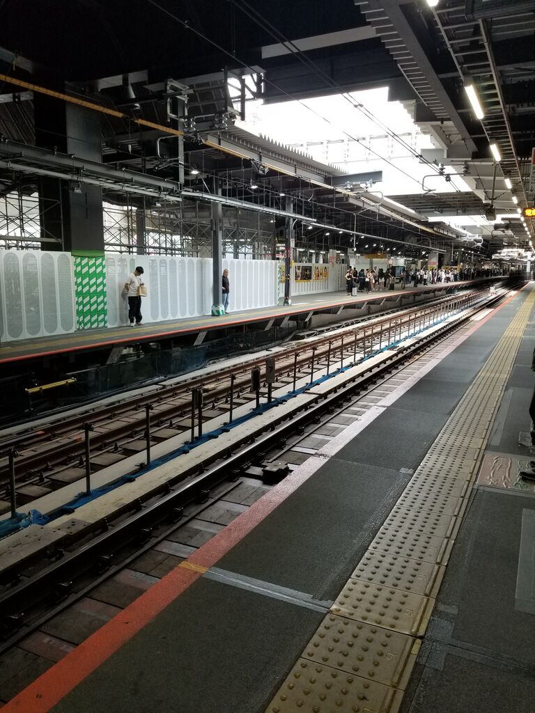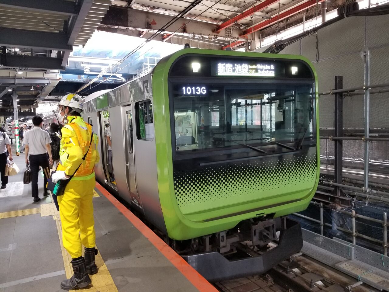 まだホームの工事は続いていて、山手線では新宿駅と並んで、ホームドアがまだ設置されていません。工事が終われば、いずれ設置されることは確実でしょうが、ホームドアがない状態で山手線を見れるのも貴重です。もちろん、ホームドアの設置は安全のためにも絶対に必要と言えます。