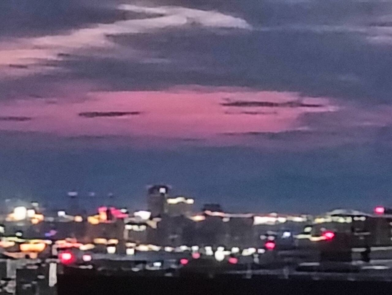 東方向、京橋OBP・大阪城・生駒山などを望む。この時は満月に。